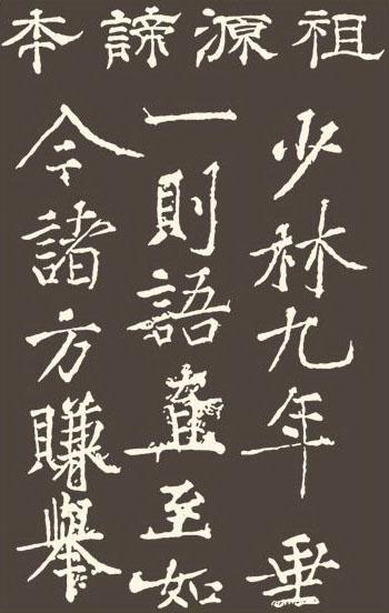 据北宋黄庭坚书《达摩颂》碑拓片。